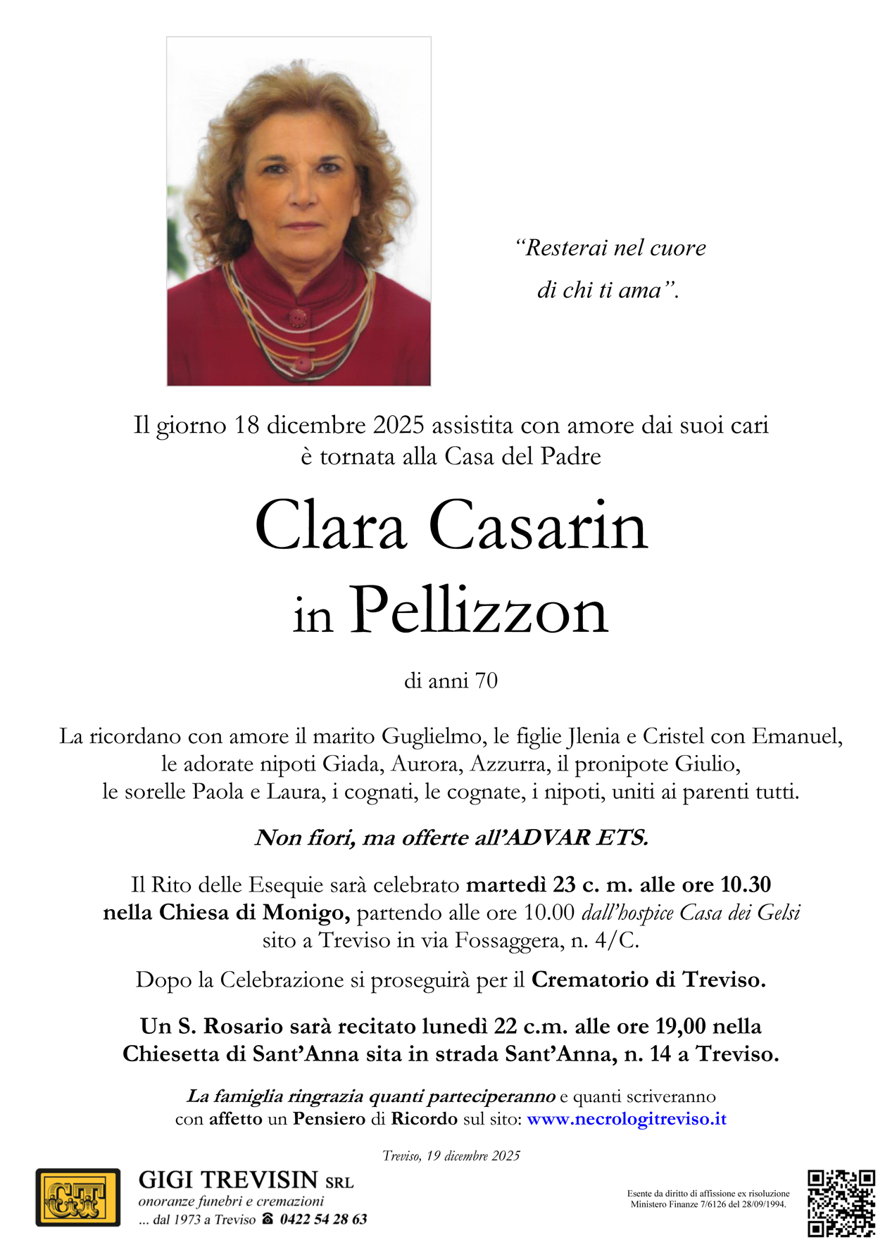 La famiglia ringrazia quanti parteciperanno e quanti scriveranno