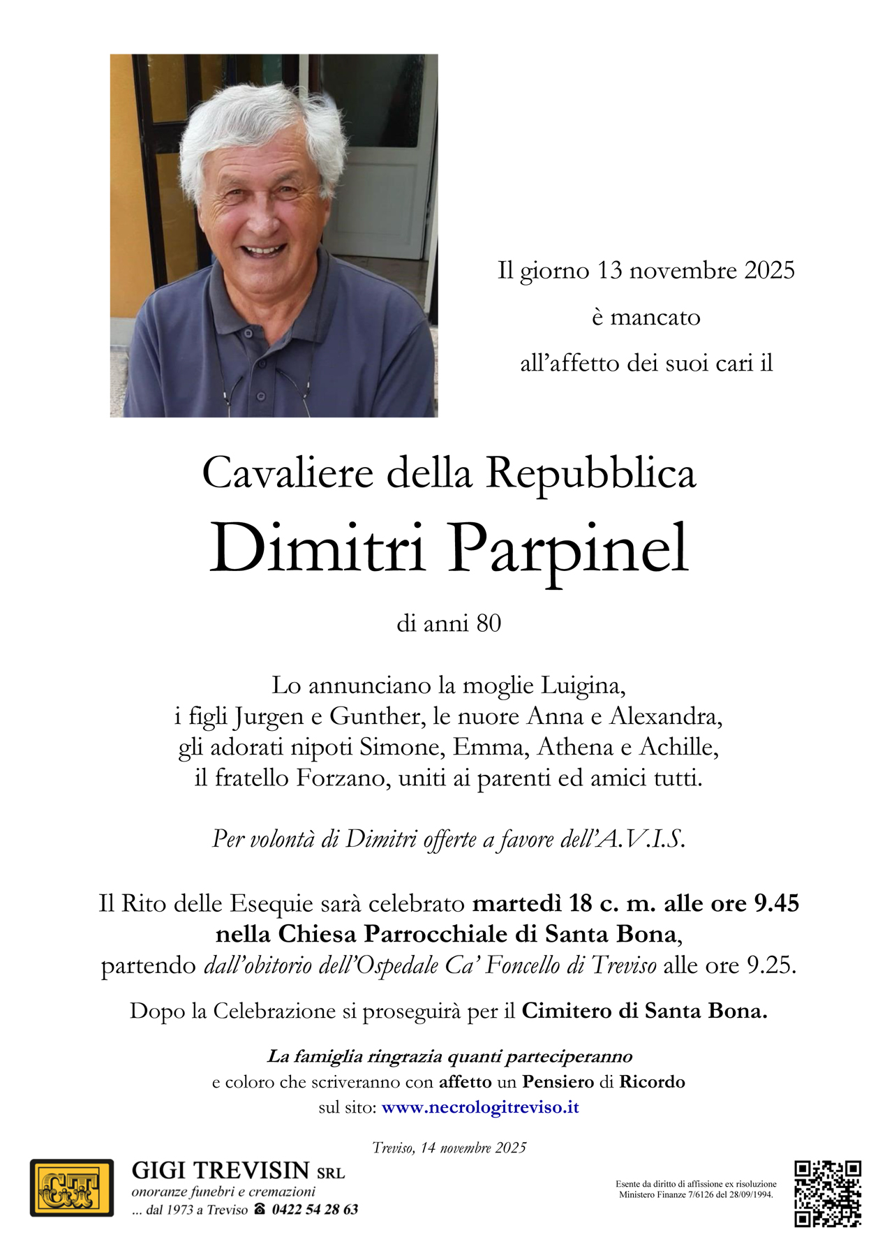 La famiglia ringrazia quanti parteciperanno