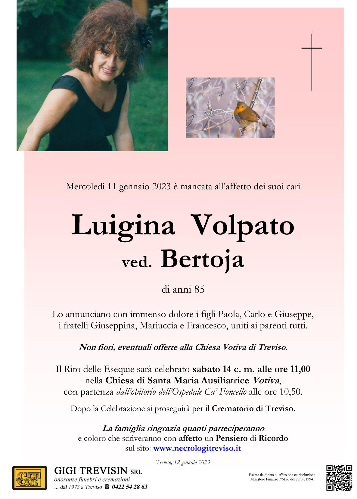 Non fiori, eventuali offerte alla Chiesa Votiva di Treviso.