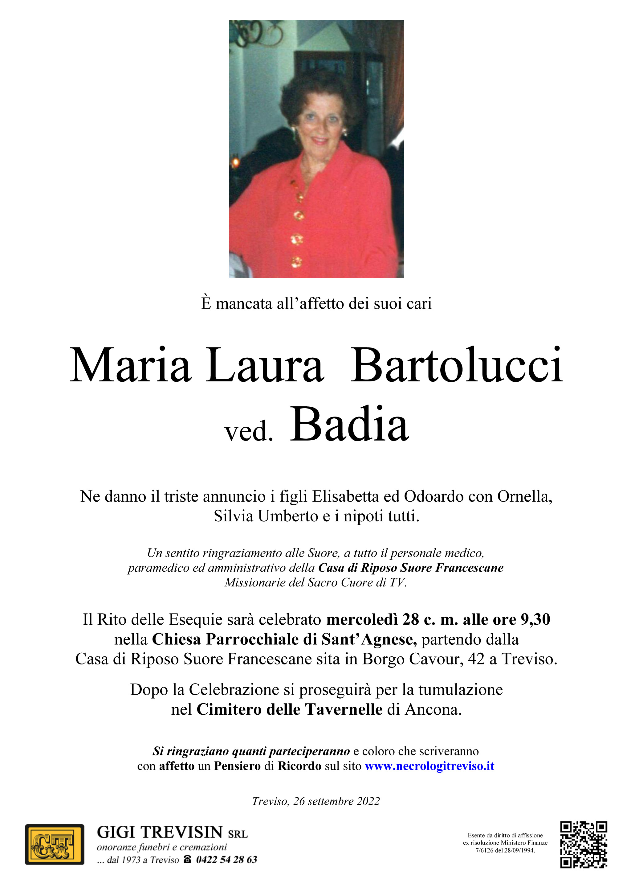 I familiari ringraziano anticipatamente tutti coloro che parteciperanno alla cerimonia funebre