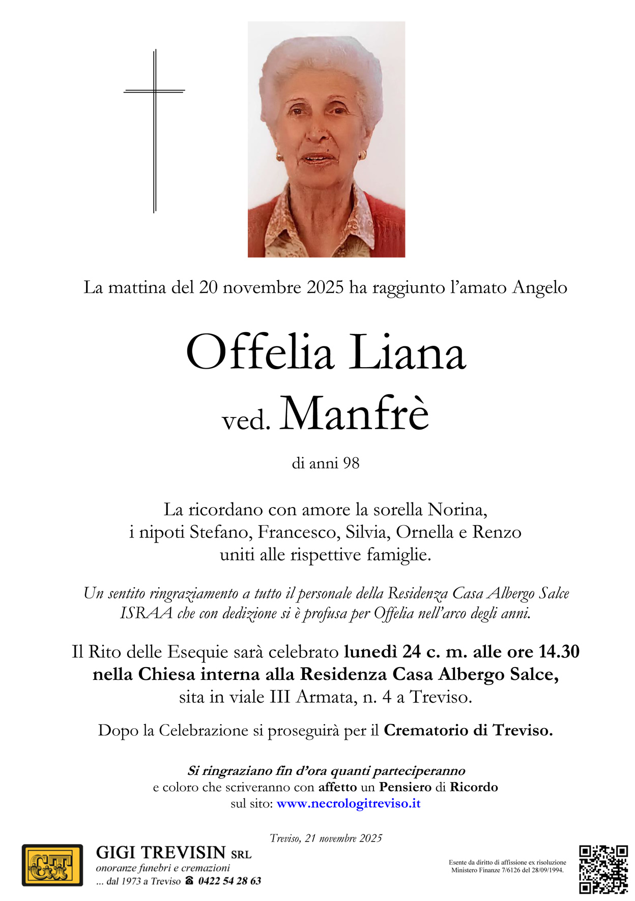 ISRAA che con dedizione si è profusa per Offelia nell’arco degli anni.